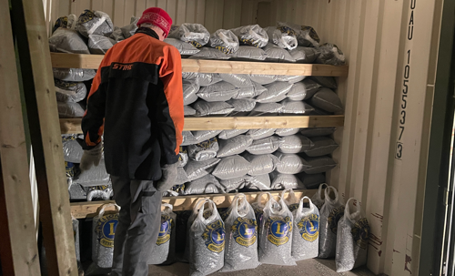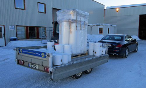 Selger oppfylte bøtter til utsalgsteder i bygda vår, Vestre Toten Kommune (ca.7500 husstander).