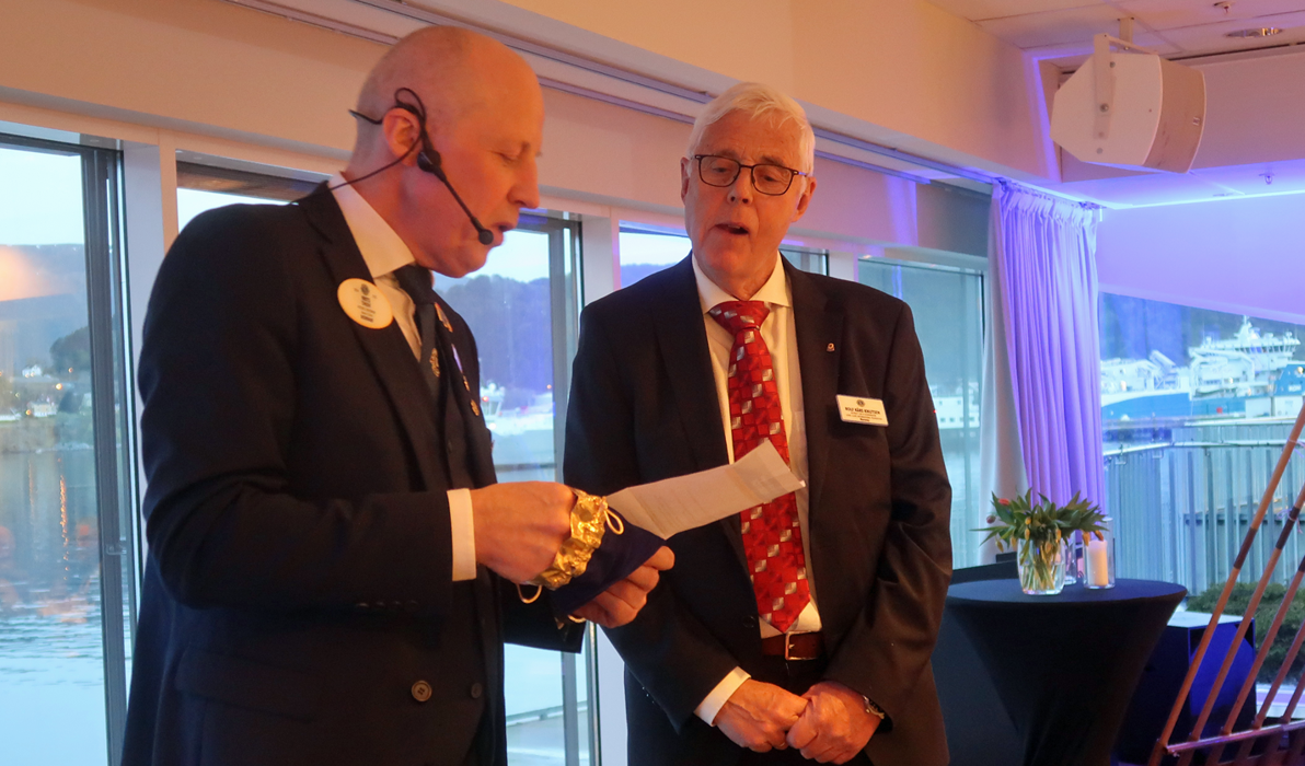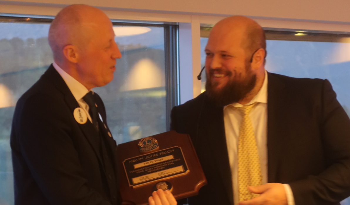Litt seinere på kvelden ble Frits Thuv selv overrasket av sin egen klubb, Lions Club Ålesund/Vegsund, der president Kristian Antonsen hadde gleden av å overrekke Lions høyeste utmerkelse, Melvin Jones, til Frits Thuv.